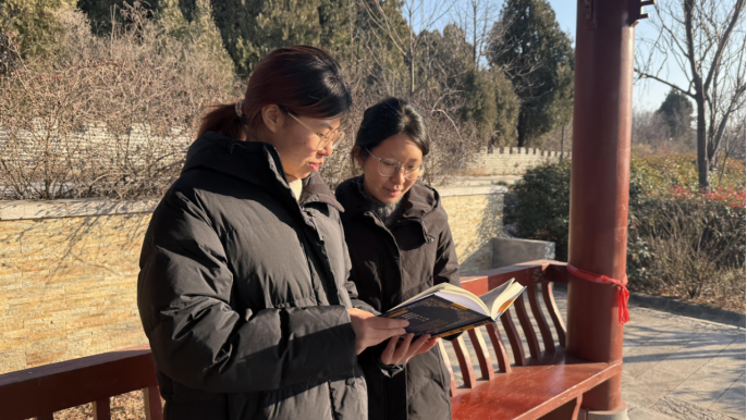 在长清扁鹊公园,团队以“与先贤对话”为主题开展沉浸式研学。队员们齐聚扁鹊雕塑前,整齐诵读《难经》经典篇目,围绕“独取寸口”“奇经八脉”等核心理论深入交流,系统领会扁鹊“望闻问切”四诊法的诊疗智慧与“济世救人、仁心仁术”的医德精神。通过实景感悟与经典诵读,队员们近距离触摸齐鲁中医药文化源头,深刻理解医祖扁鹊对齐鲁医学乃至中华医学发展的奠基意义,进一步坚定文化自信与践行传播使命。